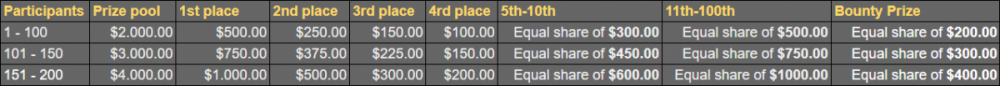 Thank you very much to everybody and congratulations to the selected ones. We had 98 valid entries All prizes were sent via Inbox, check more details below. Top 98 Participants Ranking Username Prize 1st KG562 $500 2nd bassabar $300 3rd Nymphetamine $200 4th Hoya_ $100 5th abul55 $50 6th OhNoooo $30 7th Флинт $30 8th LemaK $30 9th Satoshimaker $30 10th 1milxrp $30 11th Cryptoliser $7.95 12th Alphonse $7.95 13th cocosuavemente $7.95 14th Mvownz $7.95 15th Jonkell88 $7.95 16th yllaeR $7.95 17th Elpresidente $7.95 18th Slasher041 $7.95 19th C3C3 $7.95 20th nicehit-earthman $7.95 21st GrimReezy $7.95 22nd Monstrous Eberto $7.95 23rd Sambousik $7.95 24th CryptoraptorGDXX $7.95 25th Gekddy $7.95 26th BitsCheerful $7.95 27th -Axie- $7.95 28th Erifyli $7.95 29th luckypankaj $7.95 30th Buddric $7.95 31st Dragonrose $7.95 32nd Adrianmh94 $7.95 33rd jhonncueva $7.95 34th DaMiEnNn $7.95 35th Lovel11 $7.95 36th Kristalina $7.95 37th Spritz $7.95 38th POLIZIA $7.95 39th jiyoung $7.95 40th ~MS~ $7.95 41st MakZap $7.95 42nd Winskey $7.95 43rd Urchon $7.95 44th Enuelkno $7.95 45th uno1989_suicide $7.95 46th nica19 $7.95 47th CivicMe $7.95 48th gilll $7.95 49th GTH $7.95 50th rasmus1234 $7.95 51st Techsey $7.95 52nd eskalera $7.95 53rd yellowstone $7.95 54th POLANA $7.95 55th RORY $7.95 56th NotLuckyCat $7.95 57th Lixars $7.95 58th Jackyjacky $7.95 59th Lyepcaljcub $7.95 60th PLATINUM DUBS $7.95 61st MARY.BC.GAME $7.95 62nd Vlkyrie $7.95 63rd Bigdaddykana $7.95 64th rhermie $7.95 65th _r_0_w3_n_4_ $7.95 66th NORNMAn $7.95 67th Shinjo $7.95 68th Mkulet $7.95 69th yuikkaze $7.95 70th HavABreak127 $7.95 71st Annealex $7.95 72nd RollaDice $7.95 73rd MaksatMe $7.95 74th Sukuna $7.95 75th B0unty $7.95 76th Satoshimask $7.95 77th prats12345 $7.95 78th narcisyo $7.95 79th TipLangSapatNa $7.95 80th BigBadGonaGetcha $7.95 81st winit $7.95 82nd Eve2807 $7.95 83rd AngiCarlin $7.95 84th Player987 $7.95 85th thiago18 $7.95 86th Mugen $7.95 87th LemmeWin $7.95 88th amirhaji $7.95 89th Camz $7.95 90th skyhook $7.95 91st Txcseqexgeblek $7.95 92nd Echebase $7.95 93rd kevinxdeeee $7.95 94th Stage78cancer $7.95 95th Hernanruiz $7.95 96th Jungren $7.95 97th AgustinLuppi $7.95 98th Black Tiger $7.95 Thank you to all who took part in our twenty-first Prestige! Don't forget to join our other Challenges, give it a try here.