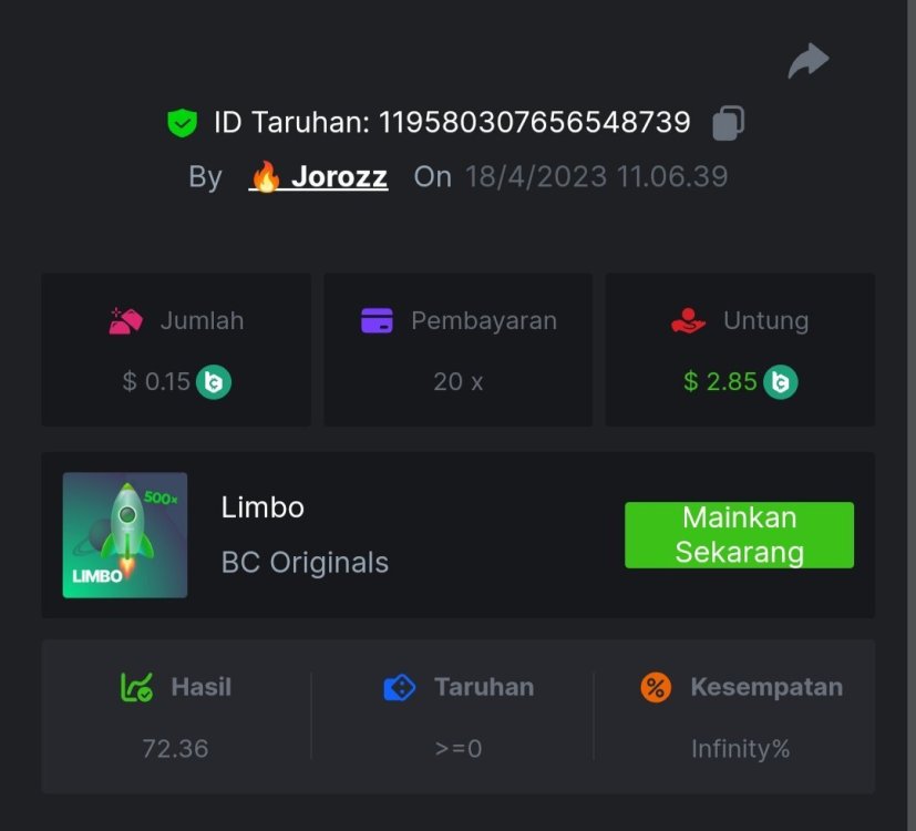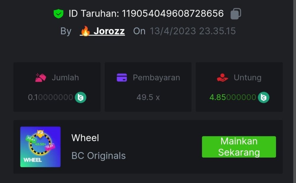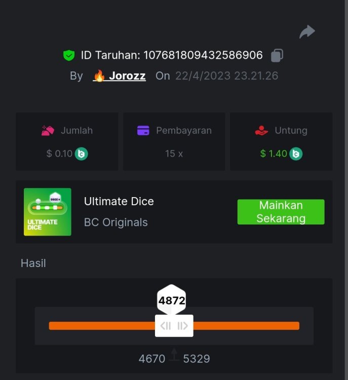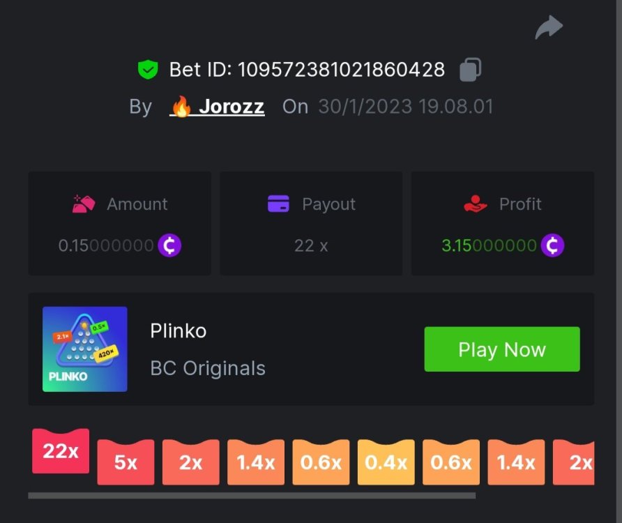 4. EASY 1. Classic Dice x5 https://bc.game/#/sd/117HABJTZXG93N 2. Baccarat Tie x9 https://bc.game/#/sd/117HAE6HJX1S7N 3. Crash x10 https://bc.game/#/sd/117HAOKZZ28AVN 4. Egyptian Adventure x10 https://bc.game/#/sd/117HAV0LKXT4PF 5. Oriental Beauties x20 https://bc.game/#/sd/117HB4734PPMHF 6. Cave Of Plunder x7.5 https://bc.game/#/sd/117HB9GUQAJEOJ 7. Sport Ticket ID : 2258207423246504383 8. Hello Easter x20 https://bc.game/#/sd/117HCEBI88OTG3 9. Lucky Easter x30 https://bc.game/#/sd/117HDI6Q91045V 10. Enable 2FA, Verif Email & Phone MEDIUM 1. Roullet 0 https://bc.game/#/sd/117HEOU1WKNLZN 2. Plinko x76 https://bc.game/#/sd/117HEUUG5J7GNN 3. Keno Single x50 https://bc.game/#/sd/117HF6BSZ4T0YB 4. Ring Of Fortune x99 https://bc.game/#/sd/117HJUOPXQPYQB 5. Sports Ticket ID : 2258248123044466967 HARD 1. Whell 49.5x https://bc.game/#/sd/117I6RI9AWRXN7