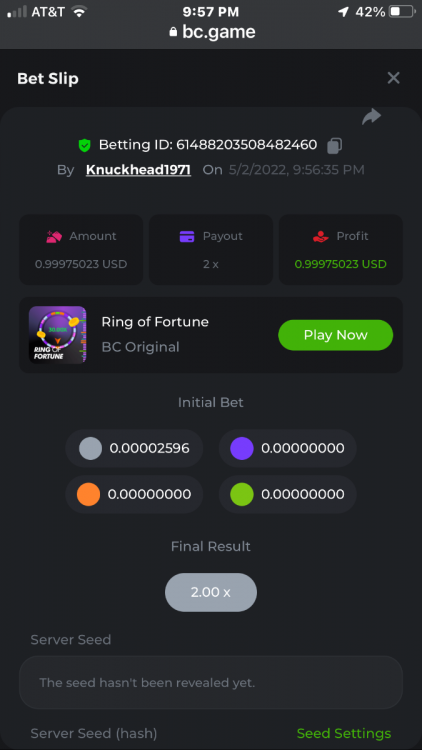 All wins are in order verified by time and date in succession grey first and green last bet was .00002596 BTC = $1.00 USD
